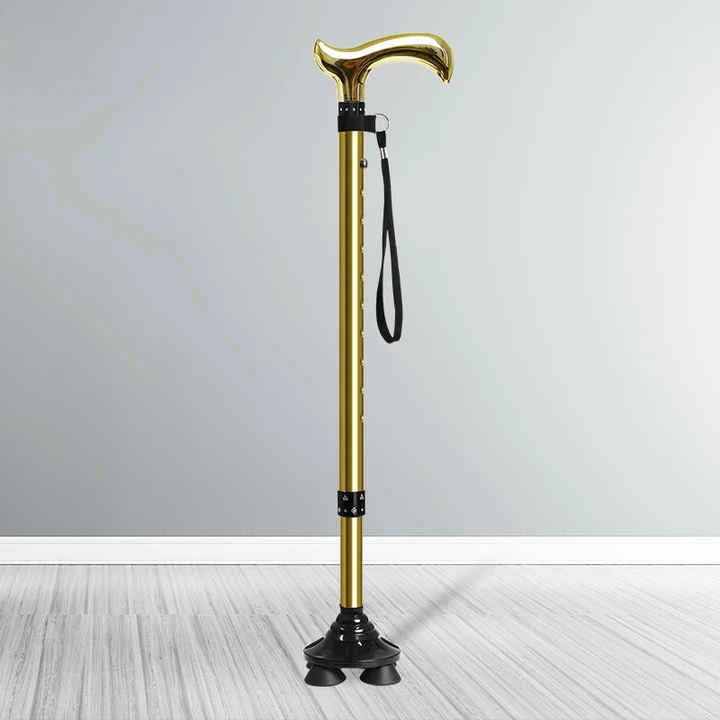 Лұқа телескопиялық жаяу жүру полюсі, квадраттық негізі оны өздігінен тұратын қамырға айналдырады, ол оны құлап кететін немесе құлап кететінін жояды. Тығыздалған бір рет таяқшаны қатты қатты жаяу жүру таяқшасы сияқты орындайды.