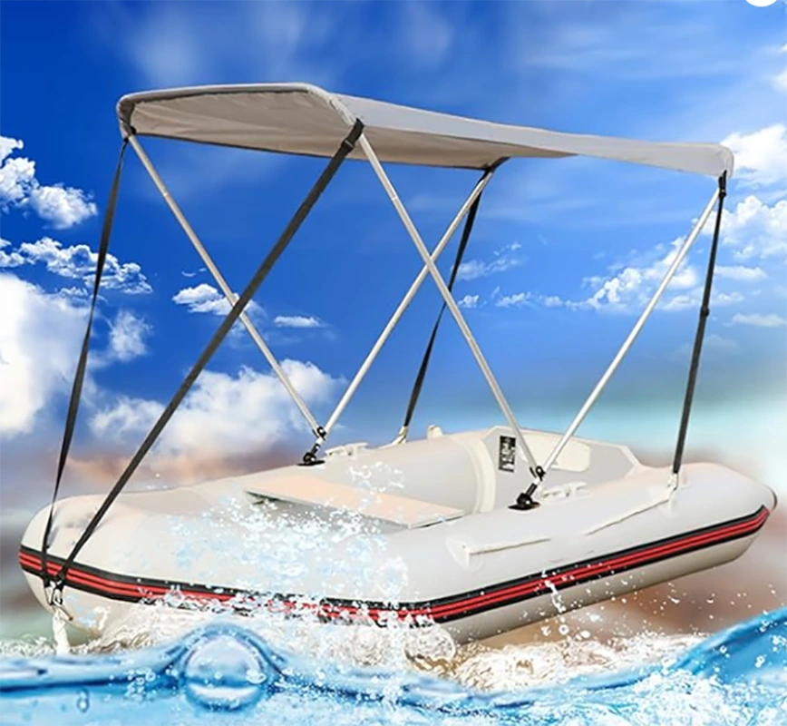 Алюминий ұзартылатын қайық қалқасы, қайық қолшатыры, қайық көлеңкесінің қалқасы, үрлемелі каноэ қайығына арналған алюминий қорытпасынан жасалған 210D қапталған Оксфорд матадан жасалған күн қалқан.