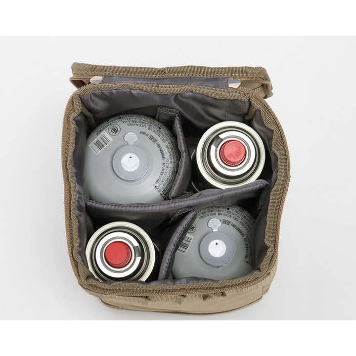 Газ плита ыдыстары Кәстрөлге арналған сөмке, басқа да ұқсас мөлшердегі ұсақтағышөп, балауыз отын канистрлері. Басқа кемпинг аксессуарлары үшін ішкі бөлгіш алынып тасталған кезде де қолдануға болады