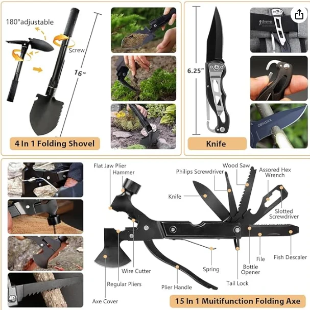 Molle Outdoor алғашқы көмек дорбаларында жалпы 250 дана көп мақсатты өмір сүру құралдары бар. Онда ең танымал өмір сүруге арналған берілістер мен құралдар, сонымен қатар аптаның немесе төтенше жағдайлар кезіндегі достар тобын емдеуге болатын алғашқы көмек жинағы бар.