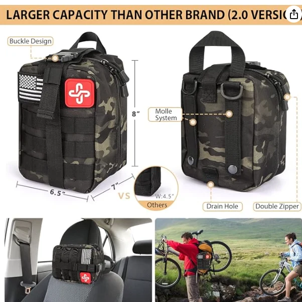 Молле сыртқы алғашқы көмек дорбасы. Бұл сізге жабысқақ баспана құруға, қосымша қауіпсіздік пен жылуды қамтамасыз етуге, дене қызуын қамтамасыз етуге, «Цзяндық Цизю» STORE ATDOOR PRODUSE CO., ЖШС, аң аулау, саяжай, серуендеу, серуендеу, серуендеу, табиғи апаттар, мысалы, жер сілкінісі, торнадо, Табиғи апаттар. Егер сізде қандай да бір сұрақтар болса, бізге хабарласыңыз, сондықтан біз сізді 24 сағат ішінде күтеміз.