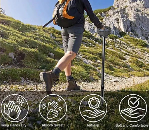 Қарт еркек таяқшалар, жиналмалы жаяу жүретін таяқшалар жүріп бара жатқанда, жүріп бара жатқанда берік, сонымен қатар дене салмағыңызды қолдағанда икемділікпен қамтамасыз етіледі.