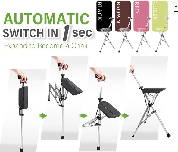 Қарт еркектер Альпенсток Трейкинг қамысы, демалып, қолдауға арналған саяхат таяқшасы. Жаяу жүру таяқшасын орындыққа бірден түрлендіретін дизайн бір сәтте шаршаған аяқтар мен тізе үшін демалуды ұсынады.