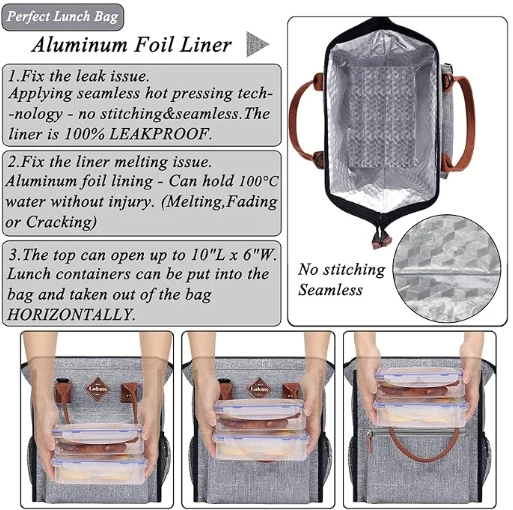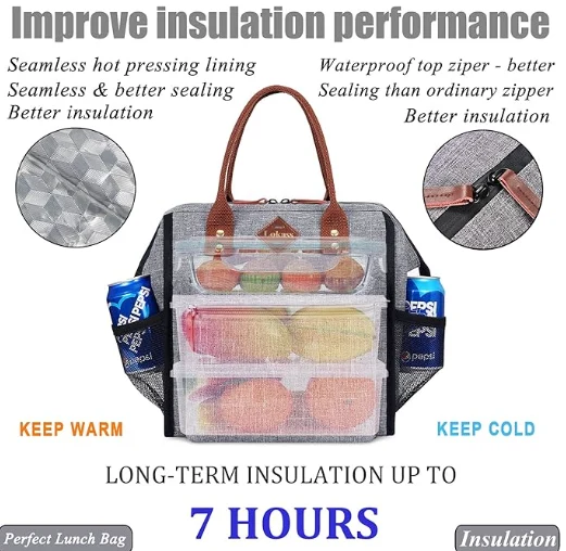 Сыртқы алюминий фольга салқындатқыш сөмкесі 100% ағып кетеді, тазартылған 100%, тазалау оңай және оңай ерітпейді. Нейлон матасы - бұл суға төзімді және жоғарғы сыдырма су өткізбейтін. Осы түскі ас сөмкесінің су өткізбейтін және оқшауланған функциялары өте жақсы.