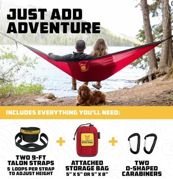 3-инфекцияланған лагерь, біздің мықты гамак, біздің мықты гамак - бұл ақылға қонымды шешім! Ол 2, 9-фут талон белдеулерімен, 2 о-тәрізді карабиндермен және жабық қоймапен жабдықталған. Берілгендей берік болғандықтан, біздің гамакка - бұл кемпингтен тұрады.