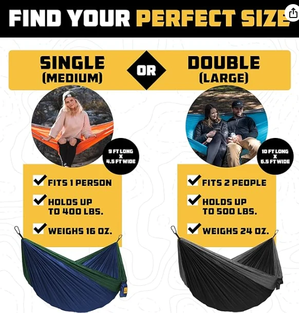 3-инфекцияланған 3-ин-1-лагерь Hammock.our Mourtepirt Hampocks Lonewight Hampocks сіздің қажеттіліктеріңізге сәйкес келетін түрлі түрлі-түсті комбинацияларда келеді. Жалғыз үкі бір адамды ыңғайлы орындайды және 400 фунтқа дейін ұстай алады. Қос үкі 500 фунтқа дейін созылуы мүмкін. Тұрғылау кезінде сөмке телефон, ішу немесе басқа заттардың қалтасы ретінде екі есе көбейді. Шабаттылық болған кезде баклажаннан үлкен емес, бұл гамак ашық оқиғаларда толығымен айналысуға өте ыңғайлы.