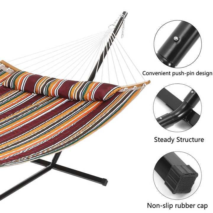 Нейлонның портативті лагері Бұл гамаконның Hammock жинағы өте қарапайым, ешқандай құрал қажет емес. Кронштейн жиналғаннан кейін, гамакканы кронштейннің ілгекке іліп қоюға болады, оны оңай бөлшектеуге болады.