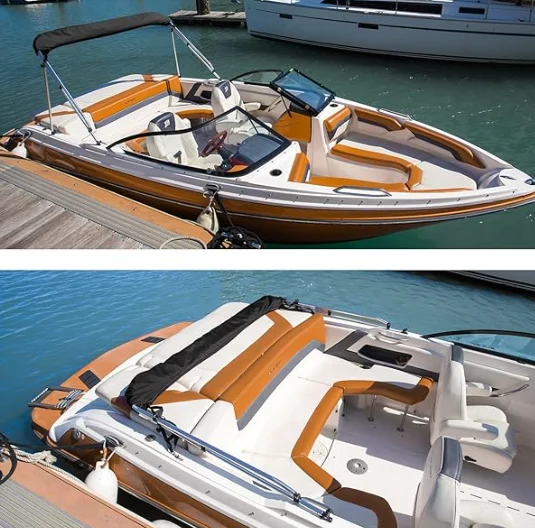 Тот баспайтын қайық Биминидің үстіңгі қабаты, екі қабатты полиэфир кенептерінен жасалған, екі есе көп Puester кенептерінен жасалған, біздің сақтау етігі күн сәулесінен, теңіз суынан, жаңбырдан және шаңнан жақсы қорғаныспен қамтамасыз етеді.